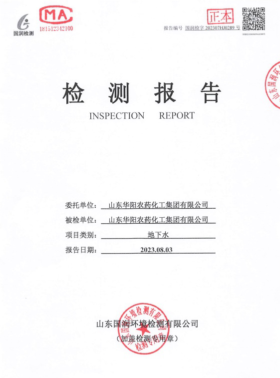 公司動態(tài) 首頁 > 華陽新聞 > 公司動態(tài) > 列表 山東華陽農(nóng)藥化工集團(tuán)有限公司地下水檢測報告 附件:山東華陽農(nóng)藥化工集團(tuán)有限公司地下水檢測報告.pdf